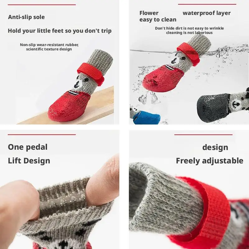4pcs/lot Winter Warm Dog Socks Anti-Slip Rain Snow Boots Waterproof Puppy Chihuahua Dogs Shoes Booties for Small Large Dogs